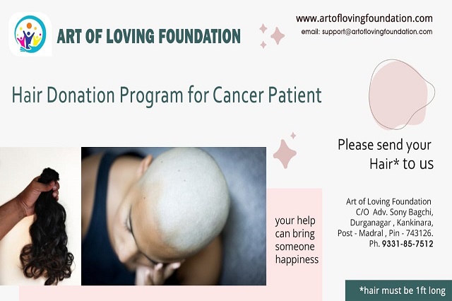 Wigs for cancer patients can help the latter to overcome the psychological effects of hair loss conditions. However, natural hair wigs being expensive, poor patients in India would be unable to afford one. We ART OF LOVING FOUNDATION provide wigs free of cost to such underprivileged cancer patients. Since the cost of hair forms the major part of a wig’s cost, receiving donated hair is crucial for these wig-makers.