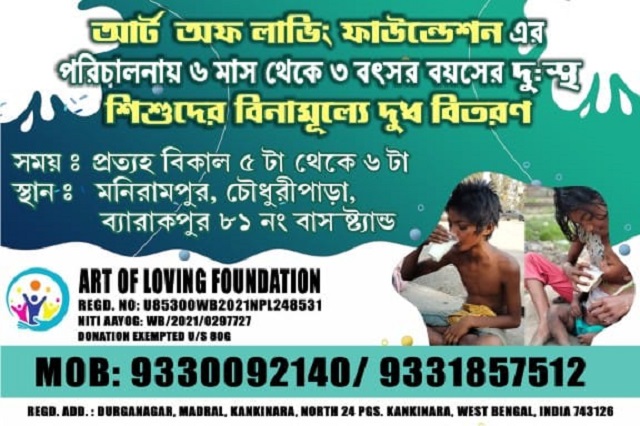 We Art Of loving Foundation tries to donate MILK To the underprivileged. Please Help us with this great Initiative.